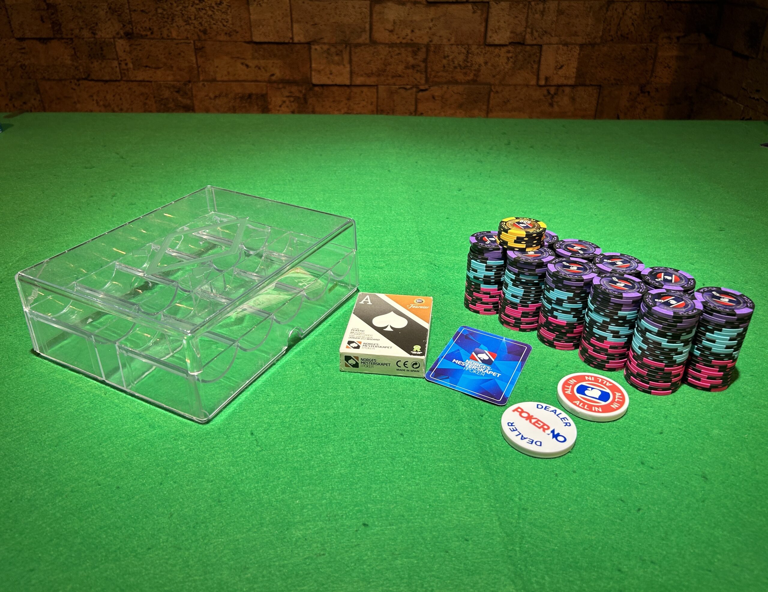 Med den lille pokerpakken kan du sette opp små pokerturneringer for maks 10 personer. Med på kjøpet får du forslag til ulike turneringsoppsett som passer til arrangementet ditt.